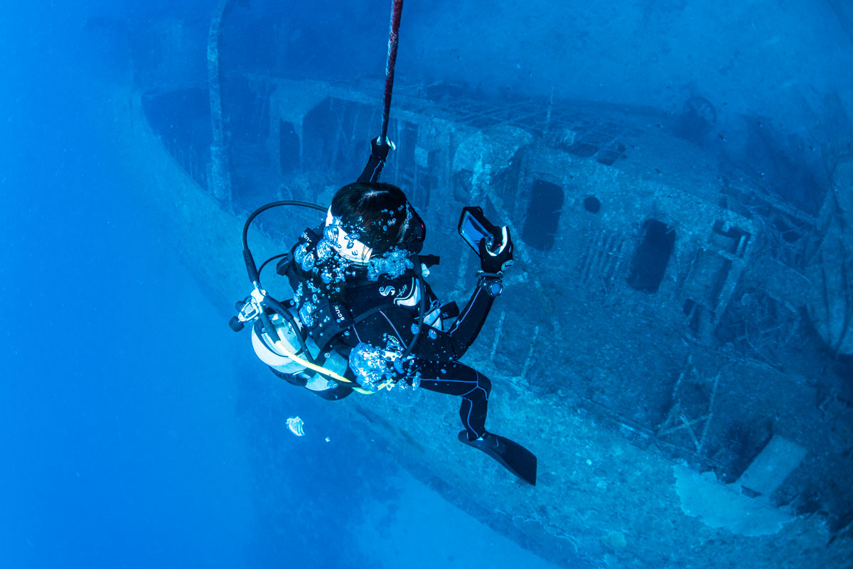 エモンズダイビングの魅力は圧倒的なスケールの沈船を間近に見られること、構造物の間を通るような迫力あるアプローチ、そして深度が深めであるため本格的なディープダイブの技術を試せる点です。通常は船首・中央・船尾のブイを使いエリアごとに潜ることが多く、流れや海況に応じて安全なルートが設定されます。ダイブは1日に2本が基本で、深度管理や減圧時間の調整をショップが厳格に行いますので、上級向けの緊張感ある体験を求めるダイバーに最適です。